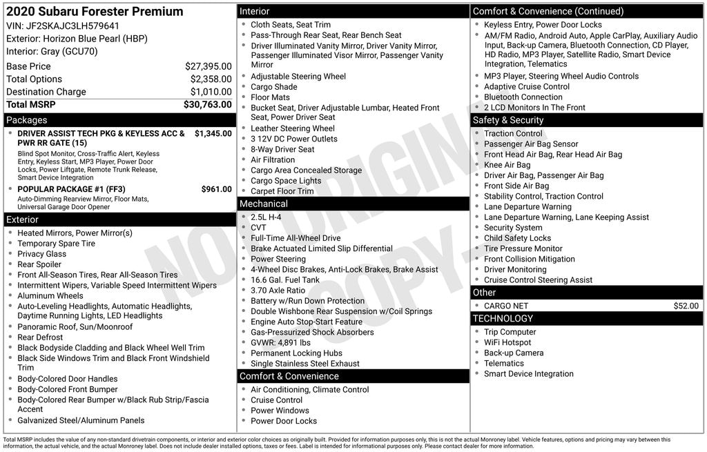 Used 2020 SubaruForester Premium